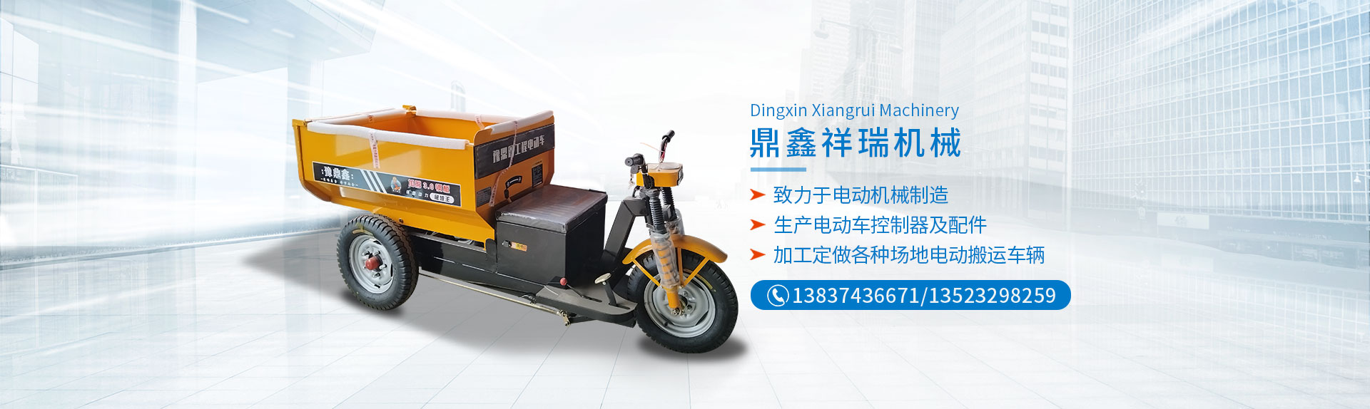 電動(dòng)工程自卸車(chē)長(zhǎng)葛市鼎鑫祥瑞機(jī)械制造有限公司(原長(zhǎng)葛市鑫洋機(jī)械配件廠)位于河南省長(zhǎng)葛市董村科技工業(yè)區(qū),東鄰220省道, 西鄰G4京港澳高速,距新鄭機(jī)場(chǎng)35公里,地理位置比較優(yōu)越,交通便利。 鼎鑫祥瑞機(jī)械制造有限公司是一家從事電動(dòng)機(jī)械制造的廠家,現(xiàn)有一支素質(zhì)很高的技術(shù)隊(duì)伍,擁有較先進(jìn)的生產(chǎn),檢測(cè)設(shè)備和科學(xué)的管理體系,為高質(zhì)量的產(chǎn)品提供了可靠的保證。 電動(dòng)工程自卸車(chē)主要產(chǎn)品有,1T電動(dòng)叉車(chē),2T電動(dòng)叉車(chē),1T,2T,3T,5T,電動(dòng)礦車(chē),載重王系列貨運(yùn)電動(dòng)三輪車(chē),窯場(chǎng)電動(dòng)專(zhuān)用車(chē),木板廠專(zhuān)用電動(dòng)車(chē),陶瓷電動(dòng)搬運(yùn)車(chē),混凝土電動(dòng)搬運(yùn)車(chē),加工定做各種場(chǎng)地電動(dòng)搬運(yùn)車(chē)輛。本公司生產(chǎn)電動(dòng)車(chē)控制器,電動(dòng)車(chē)配件及電器,各種車(chē)輛沖壓件,開(kāi)發(fā)生產(chǎn)研制電動(dòng)車(chē)后橋,各種車(chē)輛剎車(chē)?yán)瓧U,U型螺栓,加工定做異型U型螺栓。產(chǎn)品分別通過(guò)行業(yè)檢測(cè)及配套主機(jī)廠認(rèn)可,深受廣大用戶青睞。 歡迎各界人士前來(lái)參觀指導(dǎo)工作,如果您對(duì)我們的產(chǎn)品感興趣或者有任何的疑問(wèn),您可以直接給我們留言或直接與我們聯(lián)絡(luò),并提出寶貴的意見(jiàn),我們將在收到您的信息后,會(huì)及時(shí)與您聯(lián)絡(luò)。 本公司有專(zhuān)業(yè)的整機(jī)配件供應(yīng)部,供應(yīng)部地址:長(zhǎng)葛市金橋農(nóng)機(jī)城1區(qū)4排5號(hào) 電話...